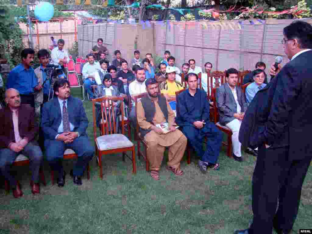 د ازادۍ راډیو مشر اکبر ایازي د ازادۍ راډیو د کرکټ د ټیم د پرانېستې غونډې ته خبرې کوي