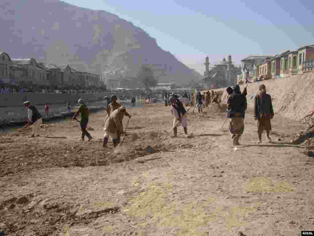 افغان کارګران د کابل سیند پاکوي