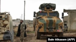 پوځي وسایط چې د ترکیې بیرغونه پرې رپېدل، د ترکیې له سرحده ۱۵ کیلومتره وړاندې په داسې حال کې د امریکا له پوځي ګاډو سره یوځای شول چې دوه پوځي هلیکوپټرې یې پرسر الوتلې.